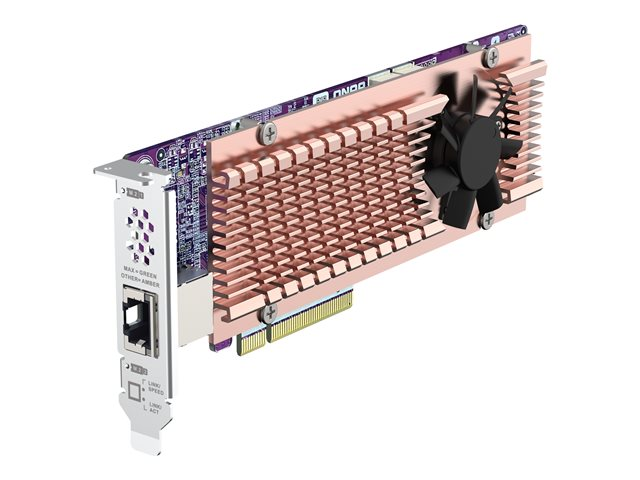 Produktbeskrivning QNAP QM2-2P410G1T - kontrollerkort - PCIe 4.0 x4 (NVMe) - PCIe 4.0 x8 Typ av enhet Kontrollerkort - instickskort - låg profil Busstyp PCIe 4.0 x8 Expansionsfack 2 M.2 2280 Formfaktorkomptibilitet för hårddisk M.2 Egenskaper 10GBASE-T-port Gränssnitt PCIe 4.0 x4 (NVMe) Enheter som stöds Halvledarenhet Max antal enheter 2 Dimensioner (BxDxH) 1.93 cm x 18.7 cm x 6.88 cm Designat för QNAP TDS-H2489, h2489FU-4309Y-64, h2489FU-4314, h2489FU-4314-128, h2489FU-4314-256, H2489FU-4314-512, TS-2888, h1290, H2490, H2490FU-7232P-64, H2490FU-7302P-128, H2490FU-7302P-256, H3088, h686, H686-D1602, h886, H886-D1622-16, TVS-472, 672, 872, h1288, H1688 -