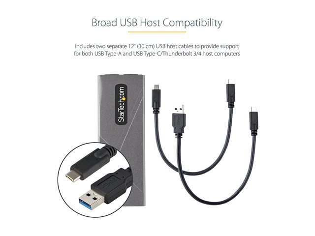 StarTech.com USB-C 10Gbps to M.2 NVMe or M.2 SATA SSD Enclosure, Tool-free M.2 PCIe/SATA NGFF SSD Enclosure, Portable Aluminum Case, USB Type-C & USB-A Host Cables, For 2230/2242/2260/2280