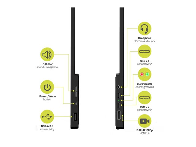 Produktbeskrivning PORT Connect LCD-skärm - Full HD (1080p) - 15.6" Typ av enhet LCD-skärm - 15.6" Paneltyp IPS Bildförhållande 16:9 Ursprunglig upplösning Full HD (1080p) 1920 x 1080 vid 60 Hz Inmatningsanslutningar HDMI, 2xUSB-C Dimensioner (BxDxH) 35.7 cm 21.5 cm Vikt 590 g Standarder som följs Plug and Play, WEEE, Morocco, UKCA Tillverkarens garanti 2 års garanti -