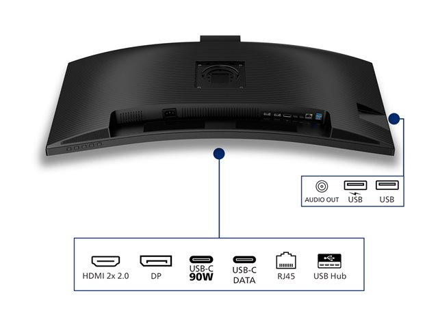 Produktbeskrivning Philips 34B2U3600CH - 3000 Series - LED-skärm - böjd - 34" - HDR Typ av enhet LED-bakgrundsbelyst LCD-skärm - 34" URL med QR-kod för energimärke Https://eprel.ec.europa.eu/qr/2365094 Energiklass Klass D Böjd skärm Ja Adaptive-Sync-teknologi AMD Adaptive-Sync Egenskaper KVM-växel, USB 3.2 Gen 1 hubb, Ethernet-nätverksadapter, webbkamera, USB PD 90 Watt Paneltyp VA Bildförhållande 21:9 Ursprunglig upplösning WQHD 3440 x 1440 (DisplayPort: 120 Hz, HDMI: 100 Hz, USB-C: 120 Hz) Pixelhöjd 0.23175 mm Ljusstyrka 300 cd/m² Kontrastförhållande 3500:1 / 50000000:1 (dynamisk) HDR-kapabel HDR10 Responstid 4 ms (grå-till-grå) Färgstöd 1,07 miljarder färger Färgskala 104% NTSC (CIE 1976), 120% sRGB (CIE 1931) Inmatningsanslutningar HDMI, DisplayPort, USB-C Inbyggt Ethernet Ja Inbyggd webbkamera 5 Megapixel Displaylägesjusteringar Höjd, vridbar bas, lutning Skärmbeläggning Bländskydd, 3H Hard Coating, Haze 25 % Spänning AC 100-240 V (50/60 Hz) Färg Svart med struktur Dimensioner (BxDxH) - med stativ (högsta position) 80.7 cm x 28.7 cm x 60.2 cm Vikt 10.401 kg Miljöstandarder TCO Certified Edge Displays, TCO-certifierad, generation 10, för displayer, ENERGY STAR-godkänd Standarder som följs Plug and Play, TUV GS, ICES-003, CB, TUV Ergo, FCC, DDC/CI, RoHS, ETL, MEPS, CEC, EMF, EAC, BFR-fri, PVC-free, kvicksilverfri, UKCA, TUV Rheinland Eyesafe Display, TUV Rheinland Low Blue Light (Hardware Solution), Eyesafe Certified 2.0, EAC RoHS -