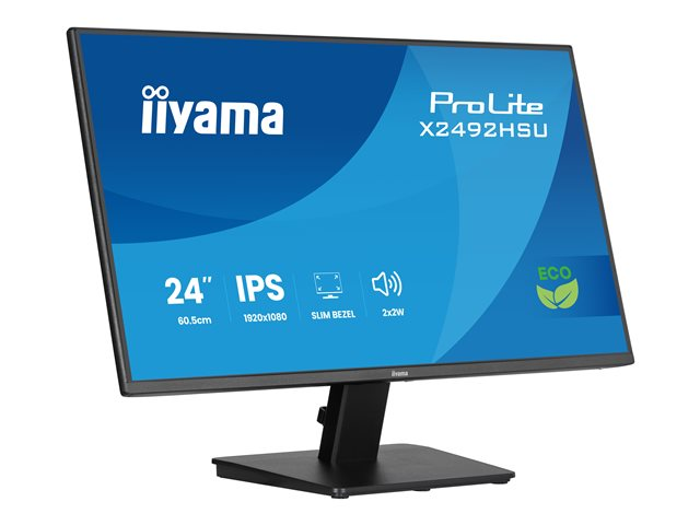 Produktbeskrivning iiyama ProLite X2492HSU-B1 - LED-skärm - Full HD (1080p) - 24" Typ av enhet LED-bakgrundsbelyst LCD-skärm - 24" URL med QR-kod för energimärke Https://eprel.ec.europa.eu/qr/2399614 Energiklass Klass B Egenskaper USB 3.2 Gen 1 hubb Paneltyp IPS Bildförhållande 16:9 Ursprunglig upplösning Full HD (1080p) 1920 x 1080 vid 120 Hz Pixelhöjd 0.275 mm Ljusstyrka 300 cd/m² Kontrastförhållande 1500:1 / 80000000:1 (dynamisk) Responstid 3 ms (grå-till-grå) Färgstöd 16,7 miljoner färger Färgskala 72% NTSC, 96% sRGB Inmatningsanslutningar HDMI, DisplayPort Displaylägesjusteringar Lutning Skärmbeläggning Matt Spänning AC 100 -240 V (50/60 Hz) Färg Mattsvart Dimensioner (BxDxH) 54.3 cm x 19 cm x 39.5 cm Vikt 3.1 kg Miljöstandarder TCO-certifierad, generation 10, för displayer Standarder som följs RoHS, WEEE, REACH, TUV Bauart, ERP, EAC, REACH SvHC, UKCA Tillverkarens garanti 3 års garanti -