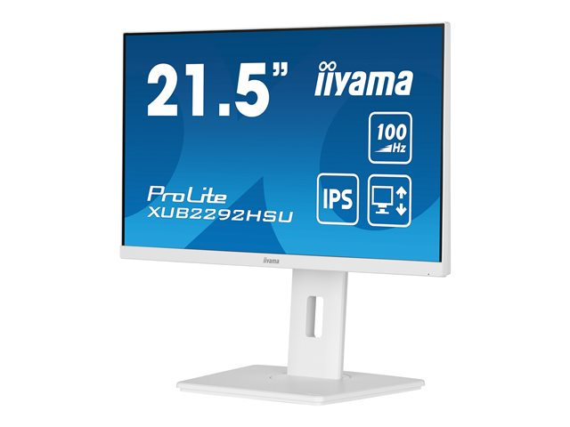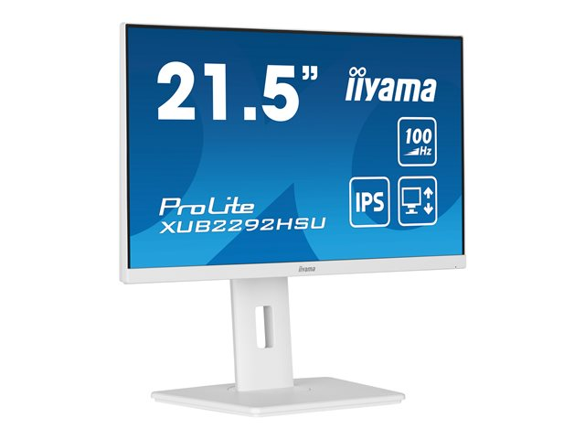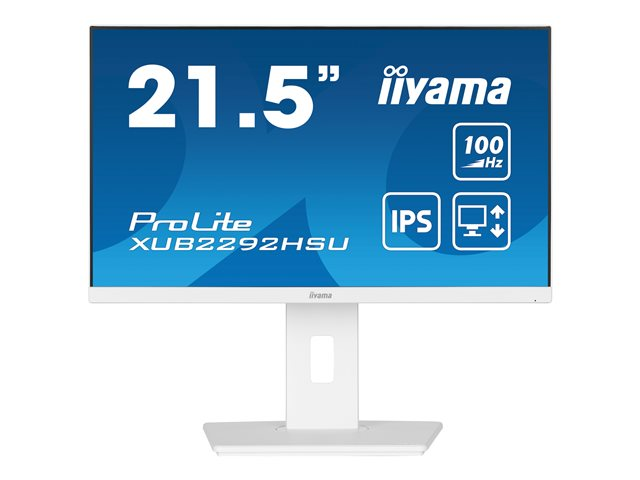 Produktbeskrivning iiyama ProLite XUB2292HSU-W6 - LED-skärm - Full HD (1080p) - 22" Typ av enhet LED-bakgrundsbelyst LCD-skärm - 22" Energiklass Klass E Adaptive-Sync-teknologi AMD FreeSync Egenskaper USB 3.2 Gen 1 hubb Paneltyp IPS Bildförhållande 16:9 Ursprunglig upplösning Full HD (1080p) 1920 x 1080 vid 100 Hz Pixelhöjd 0.248 mm Ljusstyrka 250 cd/m² Kontrastförhållande 1000:1 / 80000000:1 (dynamisk) Responstid 0.4 ms (MPRT) Färgstöd 16,7 miljoner färger Färgskala 72% NTSC, 99% sRGB Inmatningsanslutningar HDMI, DisplayPort Displaylägesjusteringar Höjd, pivot (rotation), vridbar bas, lutning Skärmbeläggning Matt Spänning AC 100-240 V (50/60 Hz) Färg Vit, matt Dimensioner (BxDxH) - med stativ (lägsta position) 48.95 cm x 10.95 cm x 33.65 cm Vikt 4.5 kg Miljöstandarder TCO Certified Displays 9 Standarder som följs DDC-2B, DDC/CI, RoHS, WEEE, PSE Mark, REACH, TUV Bauart, ERP, VCCI Class B, EAC, REACH SvHC, UKCA Tillverkarens garanti 3 års garanti -