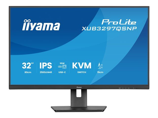 Produktbeskrivning iiyama ProLite XUB3297QSNP-B1 - LED-skärm - QHD - 32" - HDR Typ av enhet LED-bakgrundsbelyst LCD-skärm - 32" Energiklass Klass F Kedjekoppling Ja Egenskaper KVM-växel, USB 3.2 Gen 1 hubb Paneltyp IPS Bildförhållande 16:9 Ursprunglig upplösning QHD 2560 x 1440 vid 100 Hz Pixelhöjd 0.273 mm Ljusstyrka 350 cd/m² Kontrastförhållande 1000:1 / 80000000:1 (dynamisk) Responstid 1 ms (MPRT) Färgstöd 1,07 miljarder färger Färgskala 72% NTSC, 99% sRGB Inmatningsanslutningar HDMI, DisplayPort, USB-C Inbyggt Ethernet Ja Displaylägesjusteringar Höjd, pivot (rotation), vridbar bas, lutning Skärmbeläggning Matt Spänning AC 100-240 V (50/60 Hz) Färg Svart, matt Dimensioner (BxDxH) - med stativ (lägsta position) 71.4 cm x 24.55 cm x 45.2 cm Vikt 9.5 kg Miljöstandarder TCO Certified Displays 9 Standarder som följs TUV GS, DDC-2B, DDC/CI, RoHS, WEEE, PSE Mark, REACH, ERP, VCCI Class B, EAC, REACH SvHC, UKCA Tillverkarens garanti 5 års garanti -