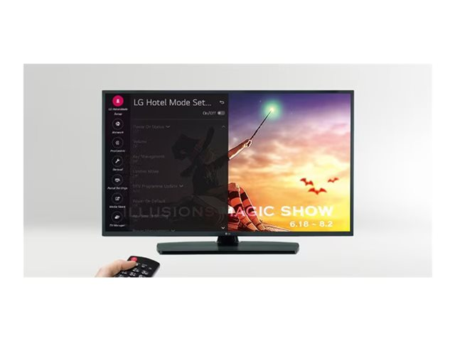 Produktbeskrivning LG 55UM767H0LJ UM767H Series - 55" - Pro:Centric LED-bakgrundsbelyst LCD-TV - 4K - för hotell/gästanläggning Typ av produkt LED-bakgrundsbelyst LCD-TV - Pro:Centric - Smart TV Diagonalklass 55" Kommersiell användning Ja - hotell/gästanläggning Färg Askblå Plattform webOS Upplösning 3840 x 2160 Visningsformat 4K UHD (2160p) HDR-format HDR10 HDR-teknologi Hybrid Log-Gamma (HLG), HDR10 Pro Videogränssnitt HDMI HDMI-portskvantitet 3 portar Anknytningsbarhet Wi-Fi, LAN, Bluetooth LCD-teknik för bakgrundsbelysning LED-bakgrundsbelysning Bildkvot 16:9 Digital TV-mottagare DVB-C, DVB-S2, DVB-T2 Analog TV-mottagare PAL, SECAM Kommersiella funktioner Hälsovårdsläge, Pro:Centric Smart, Lock Mode, Pro:Centric V, Pro:Centric Server, SNMP-support, Pro:Idiom DRM, vakna på RF, Real-Time Clock (RTC), stöd för NTP, USB Auto Playback+, Remote Diagnostics, video välkommen, Pro:Centric Direct, EzManager, Infoga bild, V-Lan Tag, Real Time Communication (webRTC), Hospitality Technology Next Generation (HTNG) 1.4, Pro:Centric Cloud, stämningsdisplay, USB-kloning, Pro:Idiom Media DRM, snabbmeny Inställningskloningskapacitet Ja Bildförbättringar AI Picture Pro, Speloptimering Högtalarsystem 2 kanaler USB Ja Inkluderade tillbehör Fjärrkontroll Spänning AC 100-240 V (50/60 Hz) Energiklass Klass F Energiförbrukning vid drift 111.2 Watt Strömkonsumtionsställ med 0.5 Watt Energikonsumtion per år 78 kWh Dimensioner (BxDxH) - utan ställ 123.6 cm x 2.97 cm x 71.6 cm Vikt 15 kg -