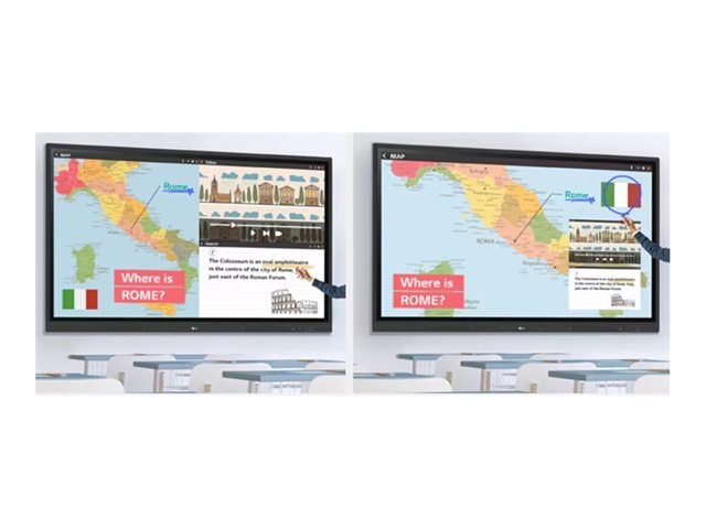 Produktbeskrivning LG CreateBoard 65TR3DK-B TR3DK Series - 65" LED-bakgrundsbelyst LCD-skärm - 4K - för utbildning/företag Typ av produkt LED-bakgrundsbelyst, platt LCD-skärm med pekskärm (multitouch) Diagonalklass 65" Kommersiell användning Ja - utbildning/företag Färg Svart Plattform Android Upplösning 3840 x 2160 Visningsformat 4K UHD (2160p) Rampris och förhöjningsteknologi 60 Hz Refresh Rate Videogränssnitt HDMI, USB-C HDMI-portskvantitet 3 portar Anknytningsbarhet Wi-Fi (valfritt), LAN, Bluetooth PC-gränssnitt VGA (HD-15) Teknik IPS LCD-teknik för bakgrundsbelysning Direct LED Bildkvot 16:9 TV-tuner Ingen mottagare Kommersiella funktioner Lock Mode, Secure Mode, LG ConnectedCare, startlogga, LG CreateBoard Share, Smart Viewing, automatisk borttagning av filer, LG ConnectedCare DMS Bildförbättringar 72 % färgomfång NTSC Högtalarsystem 2 högtalare Lagringskapacitet 32 GB USB Ja Inkluderade tillbehör Fjärrkontroll, 2 pennor Spänning AC 100-240 V (50/60 Hz) Energiförbrukning vid drift 220 Watt Strömkonsumtionsställ med 0.5 Watt Dimensioner (BxDxH) - utan ställ 148.84 cm x 87.2 cm x 89.66 cm Vikt 35 kg -