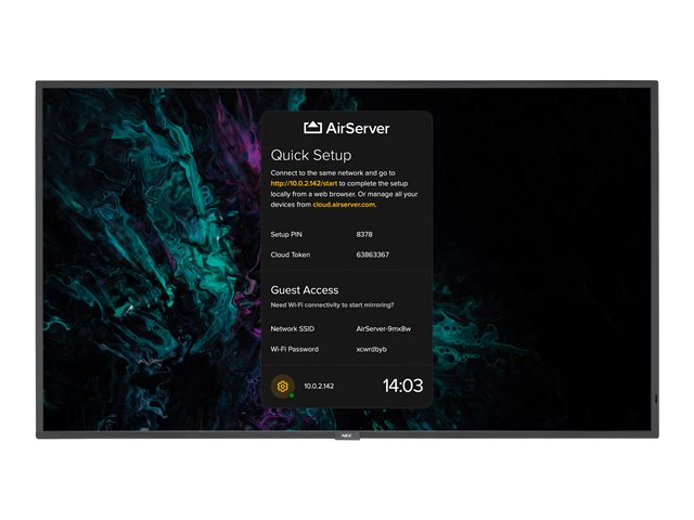 Produktbeskrivning NEC MultiSync ME551 AirServer ME Series - 55" LED-bakgrundsbelyst LCD-skärm - 4K - för digital skyltning Typ av produkt LED-bakgrundsbelyst, platt LCD-skärm med trådlös mediemottagare Diagonalklass 55" Kommersiell användning Ja - digital skyltning Färg Svart, pantone 426M Upplösning 3840 x 2160 Visningsformat 4K UHD (2160p) Rampris och förhöjningsteknologi 60 Hz Refresh Rate Videogränssnitt HDMI HDMI-portskvantitet 2 portar Anknytningsbarhet Wi-Fi, LAN PC-gränssnitt DisplayPort Teknik IPS LCD-teknik för bakgrundsbelysning Direct LED lokal dimning Bildkvot 16:9 TV-tuner Ingen mottagare Kommersiella funktioner SNMP-support Bildförbättringar DICOM simulerad gamma Högtalarsystem 2 högtalare USB Ja Inkluderade tillbehör Trådlös fjärråtkomst, trådlös fjärrkontroll, batterier Spänning AC 100-240 V (50 - 60 Hz) Energiklass Klass G Energiförbrukning vid drift 120 Watt Strömkonsumtion (driftläge) 118 W Strömkonsumtionsställ med 0.5 Watt Dimensioner (BxDxH) 124.18 cm x 6.26 cm x 71.26 cm Vikt 19.8 kg Miljöstandarder ENERGY STAR-godkänd Tillverkarens garanti 3 års garanti -