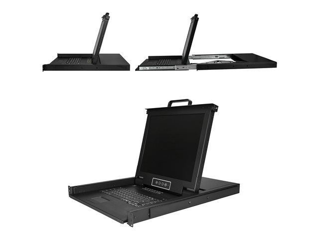 Integrerad KVM-switch med 17-tums LCD-skärm - 1U LCD KVM-låda - OSD KVM - Hållbar 50.000 MTBF - USB + VGA-support - KVM-konsol med omkopplare för tangentbord/video/mus - 16 portar - PS/2, USB - 17" - kan monteras i rack - 1280 x 1024 @ 60 Hz - 250 cd/m² - 1000:1 - 5 ms - VGA - svart - 1U