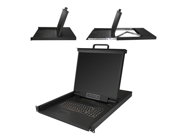 Integrerad KVM-switch med 19-tums LCD-skärm - 1U LCD KVM-låda - OSD KVM - Hållbar 50 000 MTBF - USB + VGA-support - KVM-konsol med omkopplare för tangentbord/video/mus - 8 portar - PS/2, USB - USA - engelska (QWERTY) - 19" - kan monteras i rack - 1280 x 1024 - 250 cd/m² - 1000:1 - VGA - svart - 1U