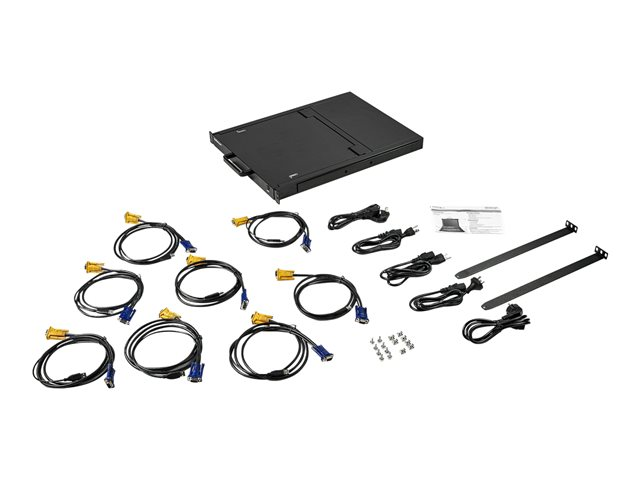 Integrerad KVM-switch med 17-tums LCD-skärm - 1U LCD KVM-låda - OSD KVM - Hållbar 50 000 MTBF - USB + VGA-support - KVM-konsol med omkopplare för tangentbord/video/mus - 8 portar - USB - 17" - kan monteras i rack - 1280 x 1024 @ 60 Hz - 250 cd/m² - 1000:1 - 5 ms - VGA - svart - 1U