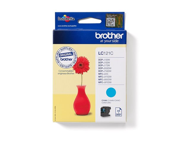 Produktbeskrivning Brother LC121C - cyan - original - bläckpatron Typ av produkt Bläckpatron Utskriftsteknik Bläckstråle Utskriftsfärg Cyan Avkastning Upp till 300 sidor ISO/IEC 24711 Kompatibel med Brother DCP-J100, DCP-J105, DCP-J132W, DCP-J552DW, DCP-J752DW, MFC-J870DW -