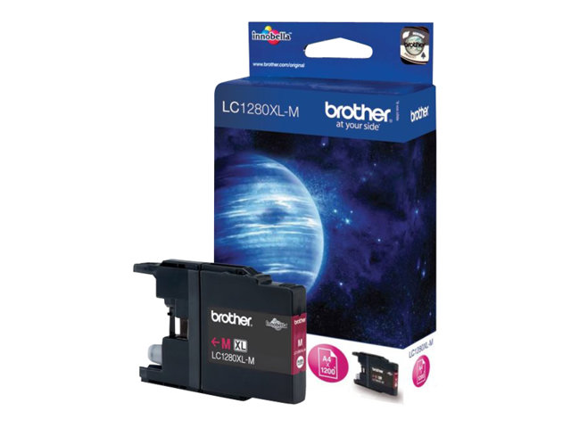 Produktbeskrivning Brother LC1280XLMBP - hög kapacitet - magenta - original - bläckpatron Typ av produkt Bläckpatron Utskriftsteknik Bläckstråle Utskriftsfärg Magenta Kassettens kapacitet Hög kapacitet Avkastning Upp till 1200 sidor ISO/IEC 24711 Förpackningstyp Blister Kompatibel med Brother MFC-J6710DW, MFC-J6910DW -