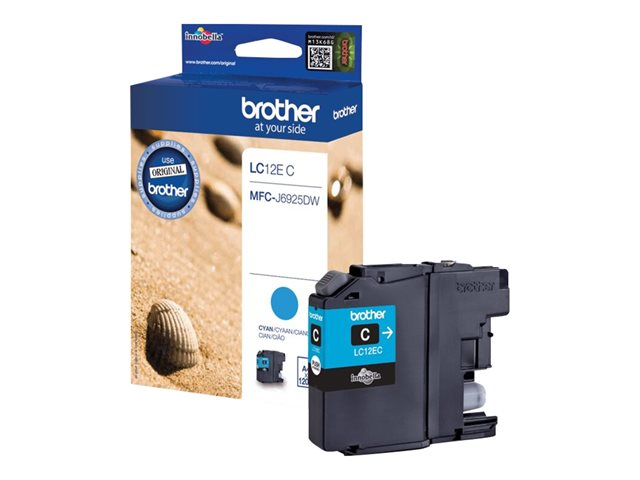 Produktbeskrivning Brother LC12EC - XL-kapacitet - cyan - original - bläckpatron Typ av produkt Bläckpatron Utskriftsteknik Bläckstråle Utskriftsfärg Cyan Kassettens kapacitet XL-kapacitet Egenskaper för tonerkassett Brother Innobella Avkastning Upp till 1200 sidor ISO/IEC 24711 Kompatibel med Brother MFC-J6925DW -