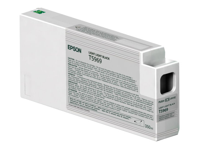 Produktbeskrivning Epson T5969 - light light black - original - bläckpatron Typ av produkt Bläckpatron Utskriftsteknik Bläckstråle Utskriftsfärg Light light black Kapacitet 350 ml Kompatibel med Stylus Pro 7890, Pro 7890 AGFA, Pro 7900, Pro 7900 AGFA, Pro 9890, Pro 9890 AGFA, Pro 9900, Pro WT7900 Designer Edition -