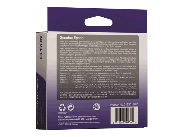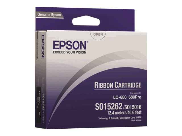 Produktbeskrivning Epson - 1 - svart - tygfärgband Typ av produkt Tygfärgband Utskriftsteknik Punktmatris Utskriftsfärg Svart Avkastning Upp till 2 miljoner tecken Medföljande antal 1 Kompatibel med LQ 1060, 2500, 2500+, 2550, 670, 680, 680Pro -