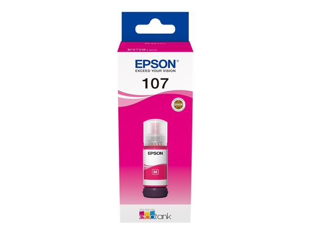 Produktbeskrivning Epson EcoTank 107 - magenta - original - påfyllnadsbläck Typ av produkt Påfyllnadsbläck Utskriftsteknik Bläckstråle Utskriftsfärg Magenta Kapacitet 70 ml Avkastning Upp till 7200 sidor Kompatibel med EcoTank ET-18100 -