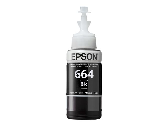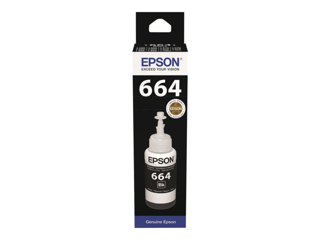 Produktbeskrivning Epson T6641 - svart - original - påfyllnadsbläck Typ av produkt Påfyllnadsbläck Utskriftsteknik Bläckstråle Utskriftsfärg Svart Kapacitet 70 ml Kompatibel med Epson L100, L110, L120, L130, L1300, L200, L210, L220, L300, L310, L350, L355, L365, L382, L386, L455, L486, L550, L555, L565; EcoTank ET-14000, ET-2500, ET-2550, ET-2600, ET-2650, ET-4500, L121, L310, L375; EcoTank ITS L3050, L3060, L3070; Expression ET-2500, ET-2550, ET-2600; WorkForce ET-4500 -