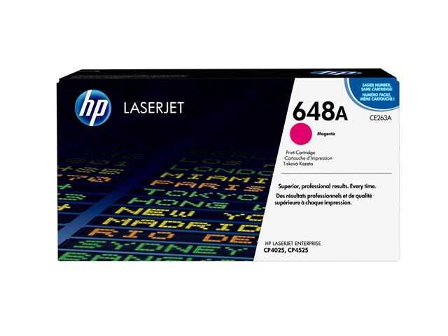 Produktbeskrivning HP 648A - magenta - original - LaserJet - tonerkassett (CE263A) Typ av produkt Tonerkassett Utskriftsteknik Laser HP-submärke LaserJet Utskriftsfärg Magenta Avkastning Upp till 11000 sidor ISO/IEC 19798 Kompatibel med Color LaserJet Enterprise CP4025dn, CP4025n, CP4525dn, CP4525n, CP4525xh -
