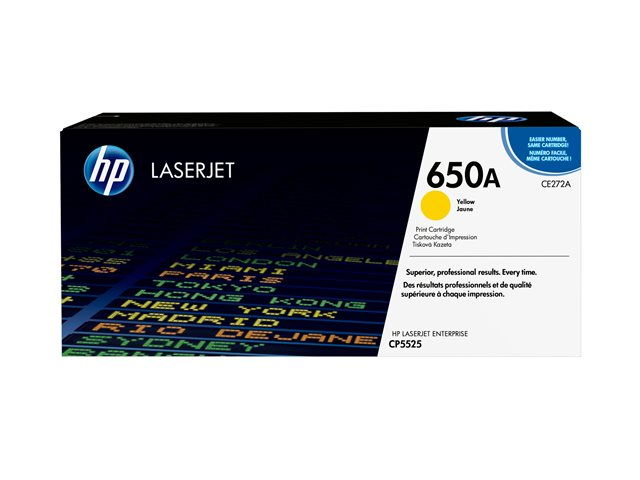 Produktbeskrivning HP 650A - gul - original - LaserJet - tonerkassett (CE272A) Typ av produkt Tonerkassett Utskriftsteknik Laser HP-submärke LaserJet Utskriftsfärg Gul Avkastning Upp till 15000 sidor ISO/IEC 19798 Kompatibel med Color LaserJet Enterprise CP5520, CP5520dn, CP5520n, CP5520xh, CP5525dn, CP5525n, CP5525xh, M750dn, M750n, M750xh -