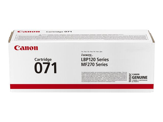 Produktbeskrivning Canon 071 - svart - original - tonerkassett Typ av produkt Tonerkassett Utskriftsteknik Laser Utskriftsfärg Svart Avkastning Upp till 1200 sidor ISO/IEC 19752 Kompatibel med I-SENSYS LBP122dw, MF272dw -