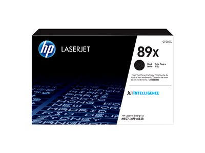 Produktbeskrivning HP 89X - hög kapacitet - svart - original - LaserJet - tonerkassett (CF289X) Typ av produkt Tonerkassett Utskriftsteknik Laser HP-submärke LaserJet Utskriftsfärg Svart Kassettens kapacitet Hög kapacitet Avkastning Upp till 10000 sidor -