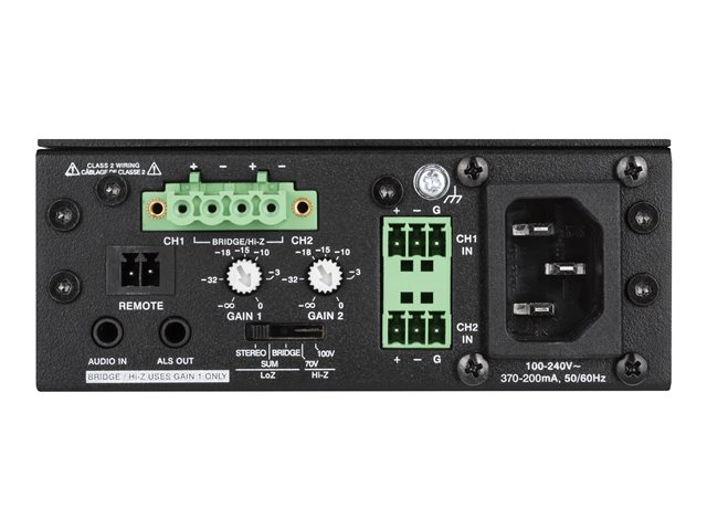 Produktbeskrivning Crestron X-Series AMP-X75 - förstärkare Typ av produkt Förstärkare Ljudspecifikationer Förstärkare - 20 - 20000 Hz - 103 dB 0.1% Strömtillförsel AC 100-240 V (50/60 Hz) Dimensioner (BxDxH) 48.3 cm x 22.3 cm x 4.4 cm Vikt 950 g -