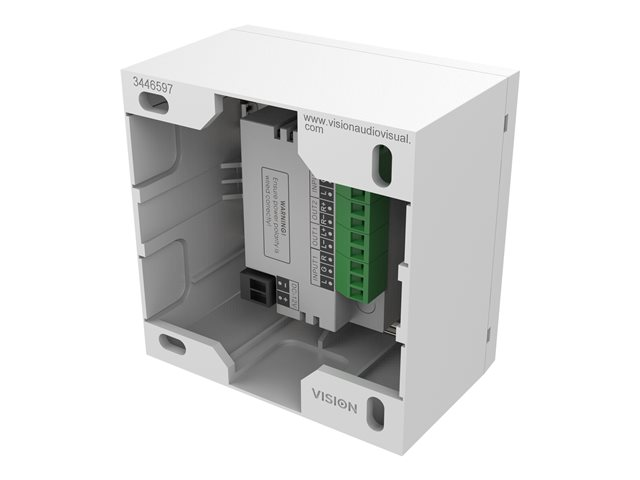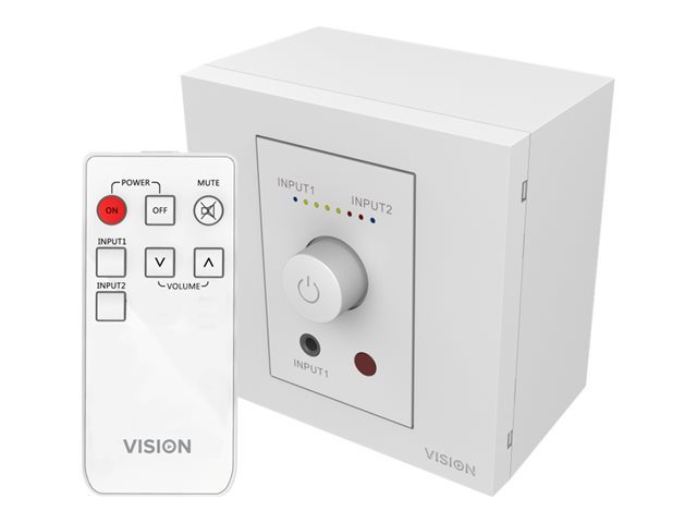 Produktbeskrivning Vision TC3-AMP - förstärkare Typ av produkt Förstärkare Färg Vit Ljudkanaler Stereo Ljudspecifikationer Förstärkare - 80 - 22000 Hz - 98 dB 1% Uteffekt 50 Watt Strömtillförsel AC 100-240 V (50/60 Hz) Dimensioner (BxDxH) 4.2 cm x 3.6 cm x 6.4 cm Vikt 63 g Tillverkarens garanti Begränsad livstidsgaranti -