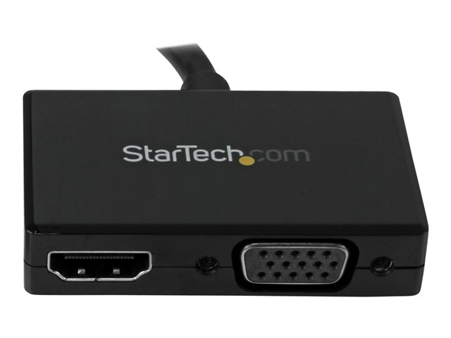 Produktbeskrivning StarTech.com A/V-reseadapter: 2-i-1 DisplayPort till HDMI eller VGA - videokonverterare - svart Typ av enhet Videokonverterare Max upplösning 1920 x 1200 Gränssnitt 1 x DisplayPort-ingång - 20-stifts DisplayPort