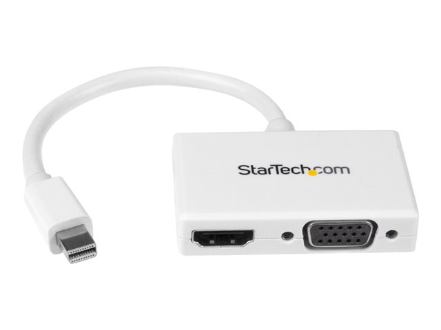 Produktbeskrivning StarTech.com A/V-reseadapter: 2-i-1 Mini DisplayPort till HDMI eller VGA-konverterare - videokonverterare - vit Typ av enhet Videokonverterare Max upplösning 1920 x 1200 Gränssnitt 1 x DisplayPort-ingång - Mini DisplayPort
