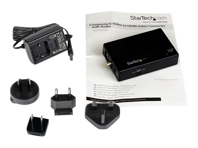 Produktbeskrivning StarTech.com Composite and S-Video to HDMI Converter with Audio - Video converter - composite video, S-video - HDMI - black - VID2HDCON - videokonverterare - svart Typ av enhet Videokonverterare Max upplösning 1600 x 1200 Gränssnitt 1 x ingång för sammansatt video - RCA