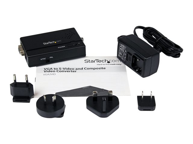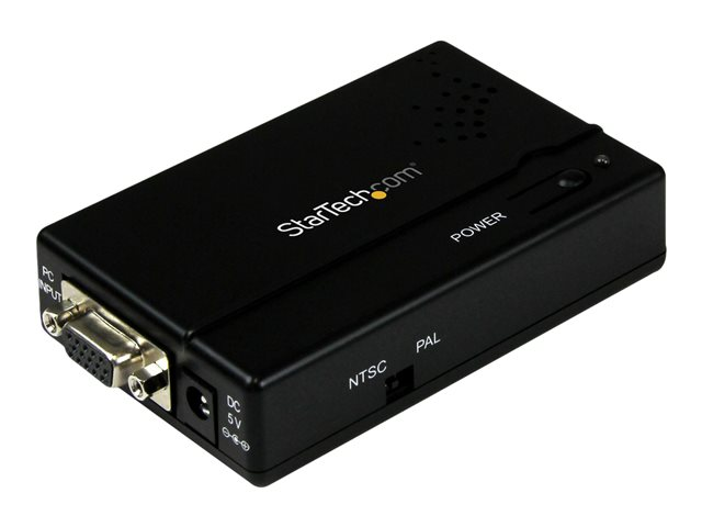 Produktbeskrivning StarTech.com High Resolution VGA to Composite (RCA) or S-Video Converter - PC to TV Video Adapter - 1600x1200 RGB to TV (VGA2VID) - videokonverterare - svart Typ av enhet Videokonverterare Max upplösning 1152 x 864 Gränssnitt 1 x VGA-ingång - 15 pin HD D-Sub (HD-15)