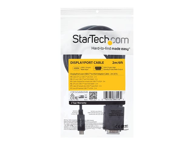 1920 x 1200 - Svart - Video/USB-kabel - USB-C (hane) till HD-15 (VGA) (hane) - 2 m - 1920 x 1200 (WUXGA) stöd - svart - för P/N: TB4CDOCK