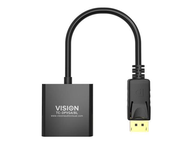 Produktbeskrivning Vision Professional - videokort - DisplayPort till HD-15 (VGA) Typ Videokort Kontaktdon 20-stifts DisplayPort - hane (ingång) Kontakt (andra änden) 15 pin HD D-Sub (HD-15) - hona (utgång) Färg Svart Tillverkarens garanti Begränsad livstidsgaranti -