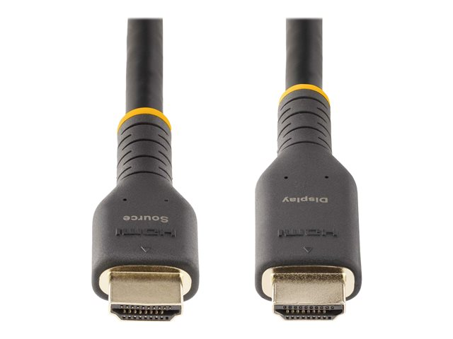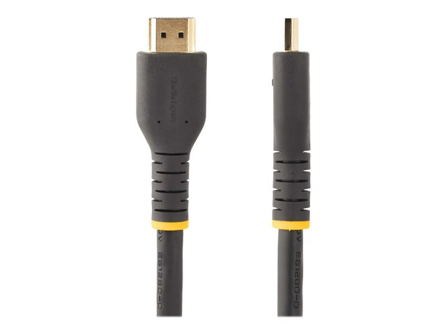 Produktbeskrivning StarTech.com 30ft (10m) Active HDMI Cable w/ Ethernet - HDMI 2.0 4K 60Hz UHD - Rugged HDMI Cord w/ Aramid Fiber - Durable High Speed HDMI Cable - Heavy-Duty HDMI 2.0 Cable - HDMI-kabel med Ethernet - 10 m Kabel Hög hastighet - HDMI-kabel med Ethernet American Wire Gauge (AWG) 28 Kabellängd 10 m Färg Svart Kontaktdon HDMI - hane Kontakt (andra änden) HDMI - hane Egenskaper Stöd för 4K-format, stöd för HDR, klammer, Spectra HT8181 chipset, aramidförstärkt kärna, 100 % kopparkabel Tillverkarens garanti 2 års garanti -