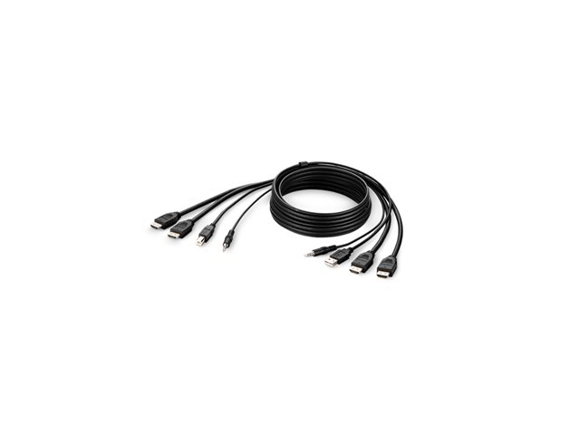 Produktbeskrivning Belkin Secure KVM Combo Cable - video/USB/ljud-kabel - TAA-kompatibel - 3.05 m Typ Video/USB/ljud-kabel Egenskaper Passiv kabel, stöd för 4K, kabelögla Kabellängd 3.05 m Kontakter 4-stifts USB typ A - hane