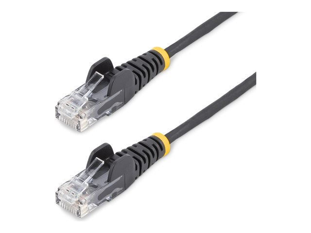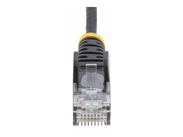 RJ-45 (hane) till RJ-45 (hane) - 25 cm - 3.6 mm - UTP - CAT 5/5e/6 - IEEE 802.3bt - halogenfri, hakfri, rak - svart