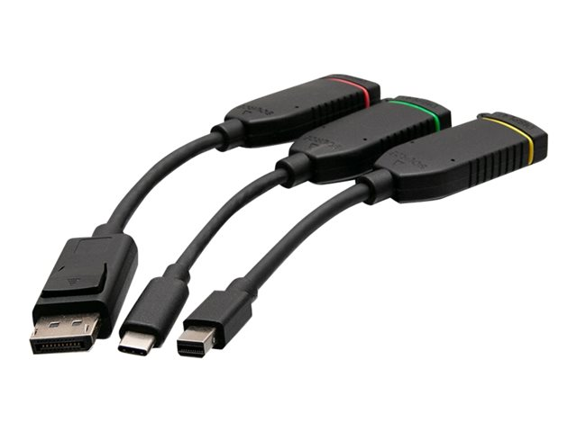 Produktbeskrivning C2G 4K HDMI Dongle Adapter Ring with Mini DisplayPort, DisplayPort, and USB C - Retractable Universal Mount - videoadaptersats - Minivisningsport/visningsport/HDMI/USB Kabel Videoadaptersats - Minivisningsport/visningsport/HDMI/USB Inkluderad kvantitet 3 Färg Svart Egenskaper Stöd för 4K Tillverkarens garanti Begränsad livstidsgaranti -