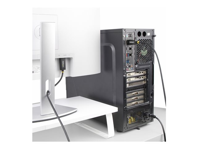 Produktbeskrivning StarTech.com 3.3ft (1m) DisplayPort to HDMI Adapter Cable, 4K 60Hz with HDR, DP to HDMI 2.0b, Active Video Converter, DisplayPort Desktop to HDMI Monitor, M/M - DisplayPort to HDMI Cord (3F-DP-HDMI-4K60-HDR) - adapterkabel - DisplayPort / HDMI - 1 m Kabel Adapterkabel - DisplayPort / HDMI Kabellängd 1 m Färg Svart Kontaktdon DisplayPort - hane Kontakt (andra änden) HDMI - hane Standarder som följs DisplayPort 1.4 Egenskaper 4K60Hz stöd, HDR-stöd Tillverkarens garanti 3 års garanti -