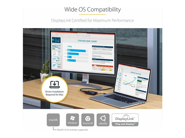 Produktbeskrivning StarTech.com USB 3.0 till HDMI-adapter - 4K 30Hz Ultra HD - DisplayLink-certifierad - USB Type-A till HDMI-skärmadapteromvandlare för bildskärm - Externt video- och grafikkort - Mac och Windows - adapterkabel - HDMI / USB - TAA-kompatibel - 20 cm Kabel Adapterkabel - HDMI / USB TAA-kompatibel Ja Max effektupplösning 3840 x 2160 - 30 Hz Kabellängd 20 cm Färg Svart Kontaktdon USB typ A - hane (ingång) Kontakt (andra änden) HDMI - hona (utgång) Standarder som följs USB 2.0/ USB 3.0 Egenskaper USB-ström + -ljud Tillverkarens garanti 2 års garanti Designat för P/N: HDDVIMM3, HDMIDVIMM10, HDMIDVIMM6, HDMM10, HDMM12, HDMM15, HDMM1MP, HDMM25, HDMM2M, HDMM2MP, HDMM3, HDMM3MP, HDMM50, HDMM50A, HDMM6, HDPMM50 -