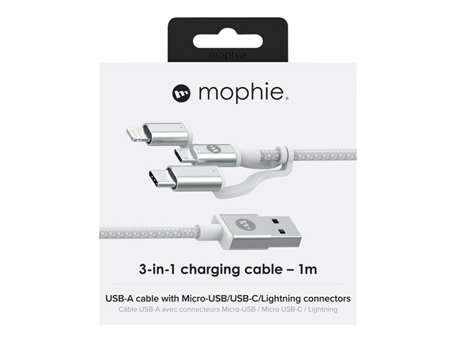 USB hane till mikro-USB typ B, Lightning, 24 pin USB-C hane - 1 m - vit