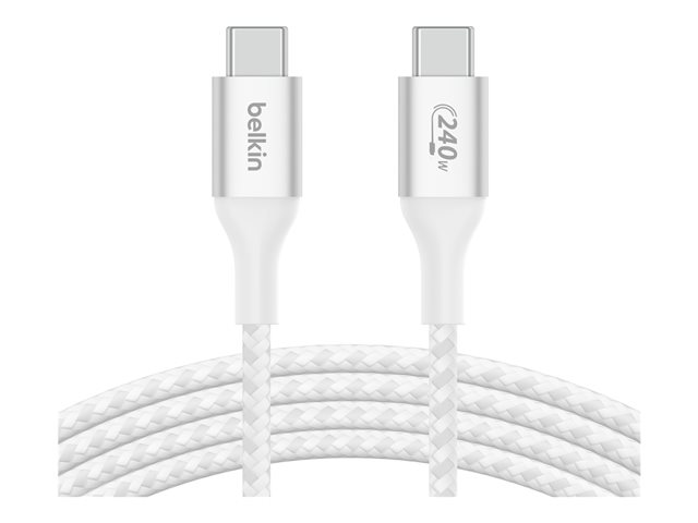 Produktbeskrivning Belkin BoostCharge - USB typ C-kabel - 24 pin USB-C till 24 pin USB-C - 1 m Typ USB typ C-kabel Egenskaper Stöd för strömleverans på upp till 240 W, overheating protection, stöd för snabbladdning, plastfri förpackning, Power Delivery 3.1-teknik (PD 3.1), tål 30 000 böjar Kabellängd 1 m Kontaktdon 24 pin USB-C - hane Kontakt (andra änden) 24 pin USB-C - hane Standarder som följs USB / USB 2.0 Färg Vit Tillverkarens garanti 2 års garanti -