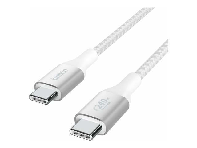 Produktbeskrivning Belkin BoostCharge - USB typ C-kabel - 24 pin USB-C till 24 pin USB-C - 2 m Typ USB typ C-kabel Egenskaper Stöd för strömleverans på upp till 240 W, overheating protection, stöd för snabbladdning, Power Delivery 3.1-teknik (PD 3.1), tål 30 000 böjar, 10 000 kontakttester Kabellängd 2 m Kontaktdon 24 pin USB-C - hane Kontakt (andra änden) 24 pin USB-C - hane Standarder som följs USB / USB 2.0 Färg Vit Tillverkarens garanti 2 års garanti -