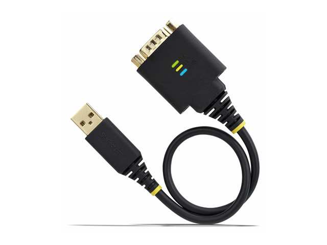 Produktbeskrivning StarTech.com 1ft (30cm) USB to Serial Adapter Cable, COM Retention, RS232 - USB / seriell kabel - USB till DB-9 - 30.5 cm Typ USB / seriell kabel Teknik Skärmad Egenskaper Formpressad, robust, EMI/RFI-skydd, skydd mot elektrostatisk urladdning (ESD), LED-statusindikator, Chipset FTDI FT232R, bussdriven, COM retention Kabellängd 30.5 cm Kontaktdon 4-stifts USB typ A - hane Kontakt (andra änden) 9 pin D-Sub (DB-9) - hane - skruvbar Standarder som följs USB 2.0 / USB 1.1 Tillverkarens garanti 2 års garanti -