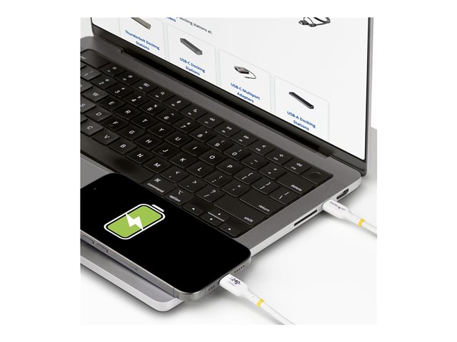 Produktbeskrivning StarTech.com 1m USB C Charging Cable, USB-IF Certified USB-C Cable, 240W - USB typ C-kabel - USB-C till USB-C - 1 m Typ USB typ C-kabel Teknik Skärmad Egenskaper Halogenfri, passiv kabel, utökat effektområde (EPR), USB-strömförsörjning (240W), Stöd för Power Delivery 3,1, synkronisering och laddning, EMI-skydd, e-markörchip, kopparledare, 480 Mbit/s datahastighet, stöd för snabbladdning, bussdriven, livslängd 10000 anslutningar Kabellängd 1 m Kontaktdon 24 pin USB-C - hane Kontakt (andra änden) 24 pin USB-C - hane Märkspänning 48 V Märkström 5 A Standarder som följs USB / USB 2.0 Färg Vit Tillverkarens garanti Begränsad livstidsgaranti -