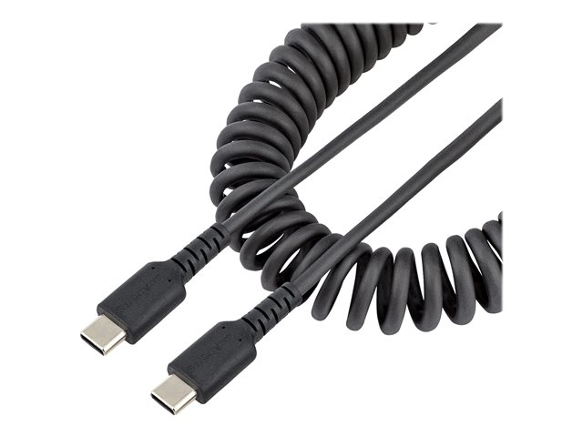 StarTech.com 1 m USB C-laddningskabel, kraftig USB-C-spiralkabel för snabb laddning och synkronisering, USB 2.0 Type-C-kabel, robust aramidfiber, slitstark hane till hane USB-kabel, svart