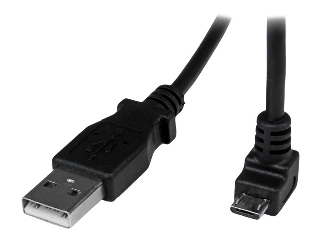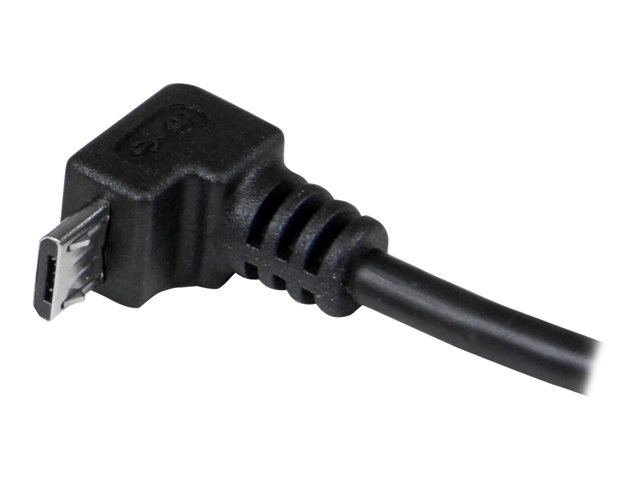 A to Down Angle Micro B - Down Angled Micro USB Cable - 1x USB A (M), 1x USB Micro B (M) - Black (USBAUB2MD) - USB-kabel - mikro-USB typ B (hane) till USB (hane) - USB 2.0 - 2 m - formpressad, 90° anslutning - svart