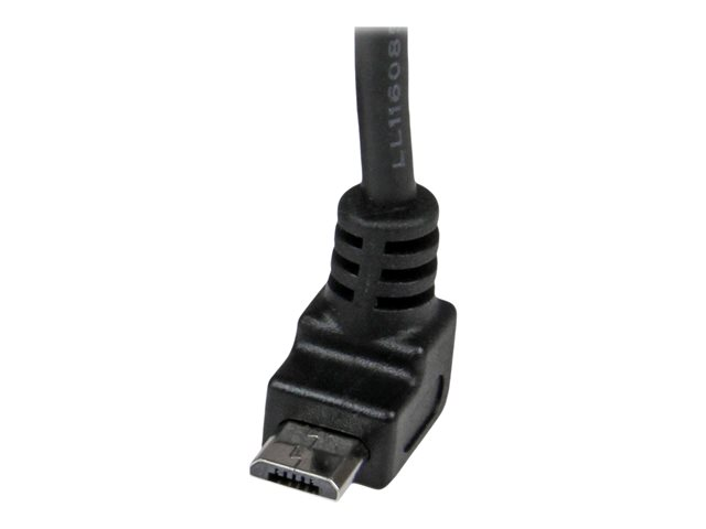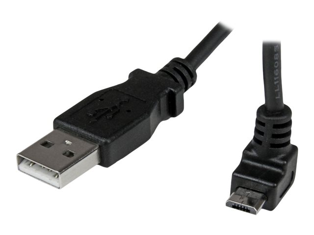 A to Up Angle Micro B - Up Angled Micro USB Cable - 1x USB A (M), 1x USB Micro B (M) - Black (USBAUB2MU) - USB-kabel - mikro-USB typ B (hane) till USB (hane) - USB 2.0 - 2 m - formpressad, 90° anslutning - svart