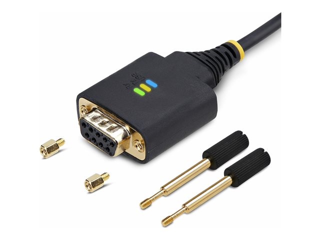 Produktbeskrivning StarTech.com 3ft (1m) USB to Null Modem Serial Adapter Cable, Interchangeable DB9 Screws/Nuts, COM Retention, USB-A to RS232, FTDI, Level-4 ESD Protection, Windows/macOS/ChromeOS/Linux - Rugged TPE Construction (1P3FFCNB-USB-SERIAL) - USB / seriell kabel - USB till DB-9 - 1 m Typ USB / seriell kabel Egenskaper EMI/RFI-skydd, skydd mot elektrostatisk urladdning (ESD), FTDI-styrenhet, LED-statusindikator, TPE-kontakthus, bussdriven Kabellängd 1 m Kontaktdon 4-stifts USB typ A - hane Kontakt (andra änden) 9 pin D-Sub (DB-9) - hane Standarder som följs USB / USB 2.0 Färg Svart Tillverkarens garanti 2 års garanti -