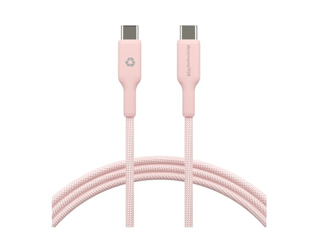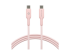 USB-kabel - USB-C (hane) till USB-C (hane) - 1.5 m - flätad kabel, USB-C Power Delivery (60W) - rosa