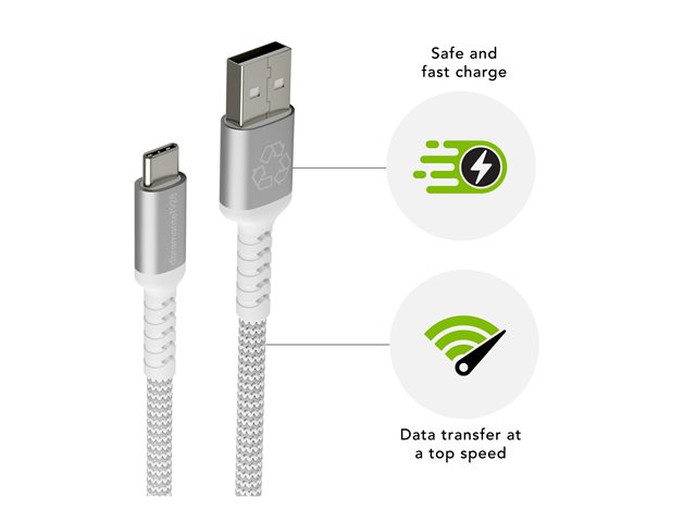 USB-kabel - USB (hane) till USB-C (hane) - 1.2 m - strömöverföring upp till 36 W, flätad kabel