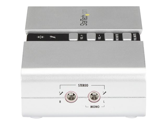 Produktbeskrivning StarTech.com 7.1 USB-audio-adapter externt ljudkort med SPDIF digital audio - ljudkort - USB 2.0 Typ av enhet Ljudkort Modell Extern Typ av gränssnitt USB 2.0 Dimensioner (BxDxH) 10 cm x 6 cm x 2.5 cm Vikt 100 g Färg Silver Ljudutgångsläge 7.1-kanals surround Samplingsfrekvens 48 kHz (max) Maskinvarostyrenheter och indikatorer Volymkontroll, dämpningsknapp Systemkrav Microsoft Windows 2000 Server, Microsoft Windows Vista (32/64 bits), Microsoft Windows 7 (32/64 bits), Microsoft Windows XP (32/64 bits), Microsoft Windows Server 2003 (32/64-bits), Windows 8 (32/64 bitars), Microsoft Windows Server 2008 R2 (32/64-bitars), Windows 8.1 (32/64 bitars), Windows 10 (32/64 bits) Tillverkarens garanti 2 års garanti Designat för P/N: MU15MMS, MU6MMS -